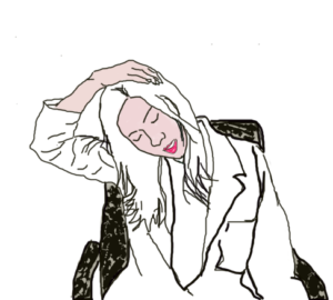 ท่าที่2: ยึดคอแก้มชิดไหล่ มือข้างหนึ่งจับทีเก้าอี้ วางมืออีกข้างที่ข้างใบหู หรือขมับ ออกแรงดึง หลังจากนั้นค่อยๆหันหน้าแก้มชิดไหล่ ตาเหลือบมองไปที่บริเวณรักแร้ นับค้างไว้ 10-15 วินาที จากนั้นสลับข้าง