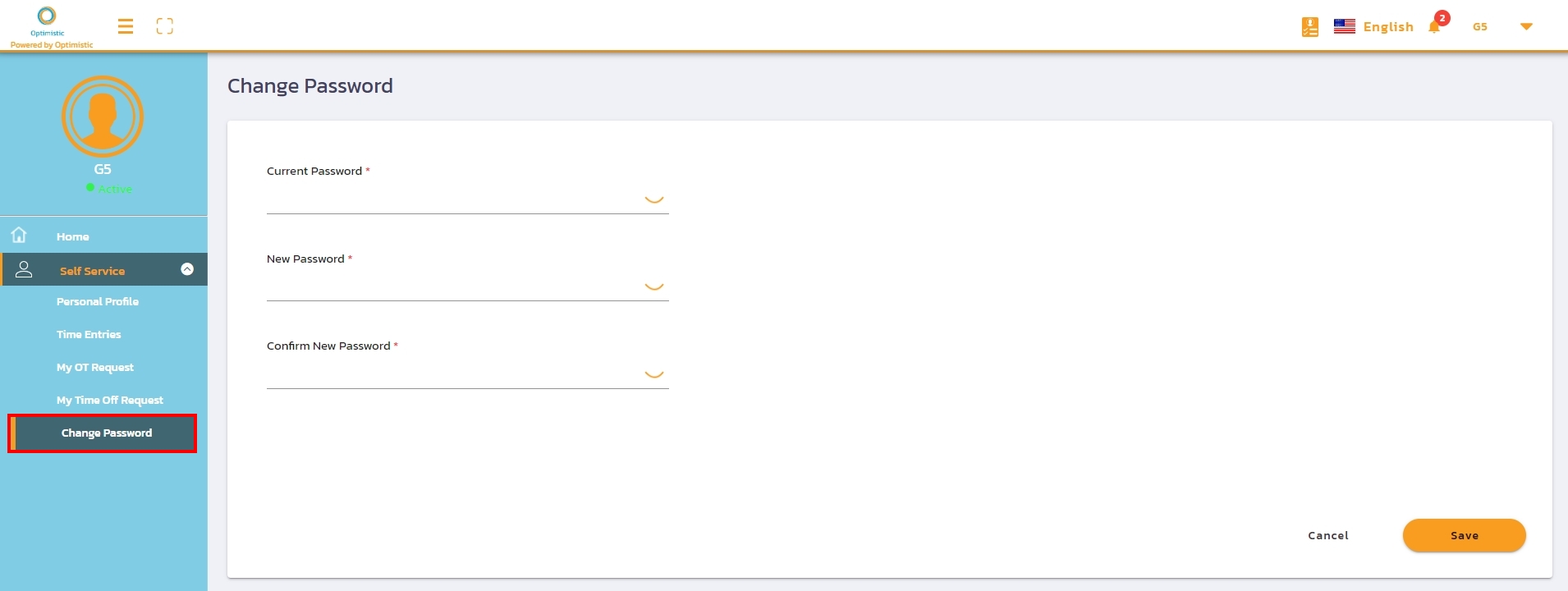 สามารถเปลี่ยนรหัสผ่านใหม่ได้ที่เมนู บริการตนเอง(Self Service) > เปลี่ยนรหัสผ่าน และทำการกรอกรหัสผ่านเดิม รหัสผ่านใหม่ และยืนยันรหัสผ่านใหม่