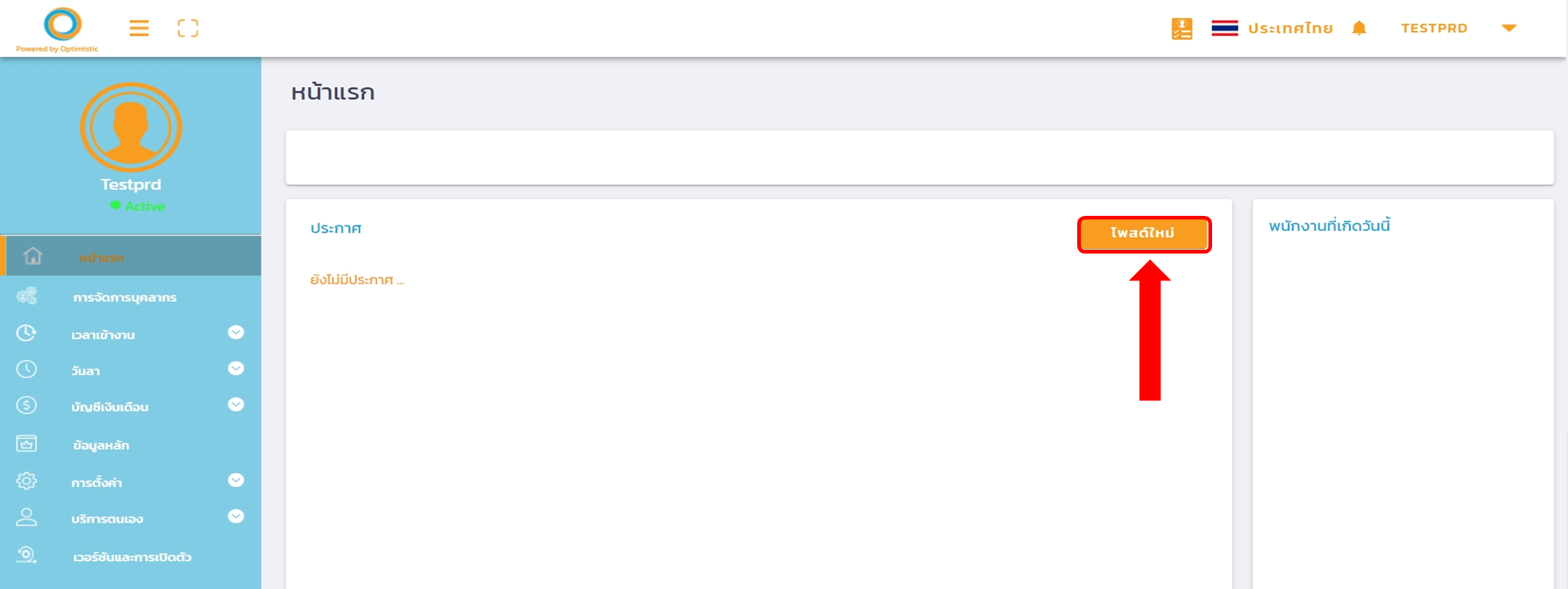 เมื่อใส่ข้อมูลประกาศเรียบร้อยแล้วกด เผยแพร่ และจะมีการแสดงประกาศในหน้าแรกของพนักงาน