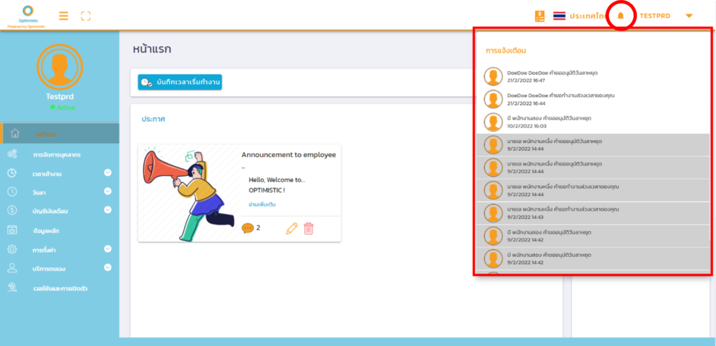 ในการทำโอทีหรือการลาหยุดของพนักงาน พนักงานจะทำการกดขออนุมัติการทำโอทีหรือขออนุมัติลาหยุดเข้ามา