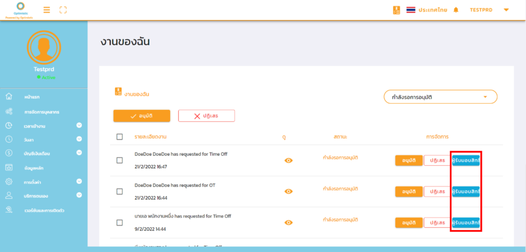 2. เมื่อกดยืนยัน รายการคำขอที่เลือก จะถูกย้ายไปยังเมนู งานของฉัน (My Task) ของพนักงานที่มอบหมายให้