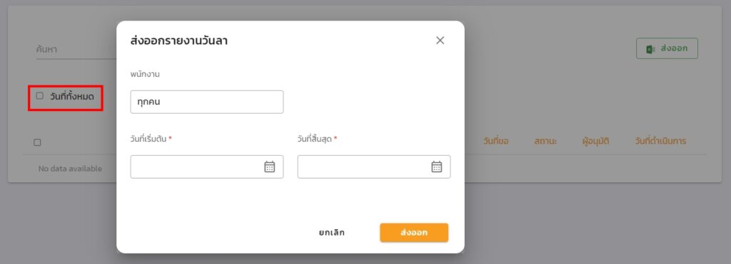 1. สามารถเลือกวันที่ทั้งหมด เพื่อส่งออกข้อมูลทั้งหมดได้