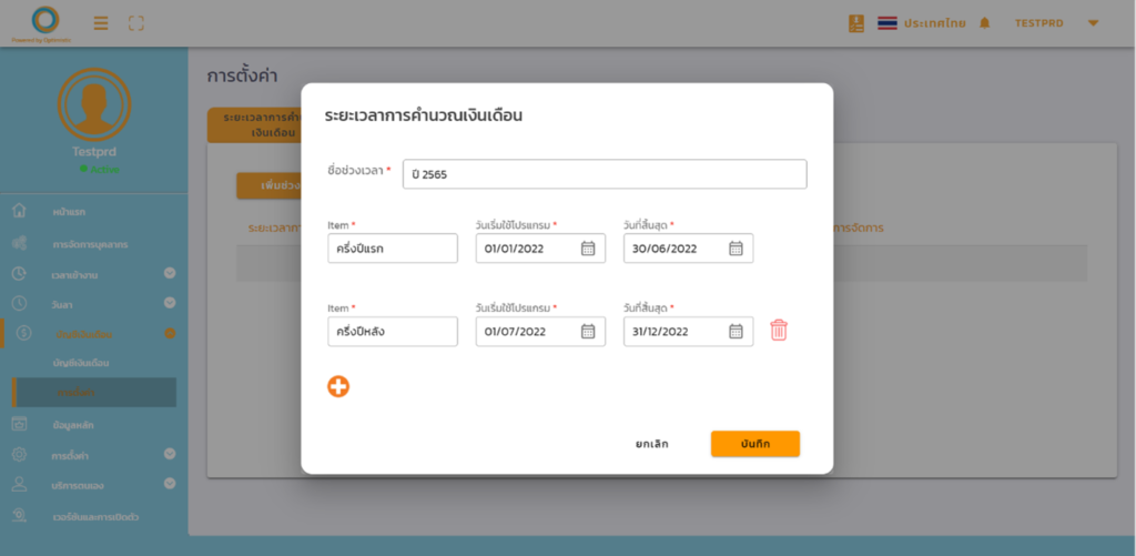 3. ตั้งชื่อช่วงเวลา และสร้างรายการช่วงเวลาที่จะใช้คำนวณเงินเดือนพนักงาน จากนั้นกด บันทึก