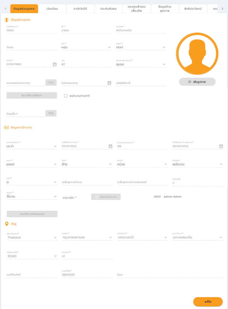 ข้อมูลส่วนบุคคล เป็นข้อมูลเกี่ยวกับตัวพนักงาน เช่น ชื่อ ที่อยู่ วันเกิด ข้อมูลการจ้างงาน