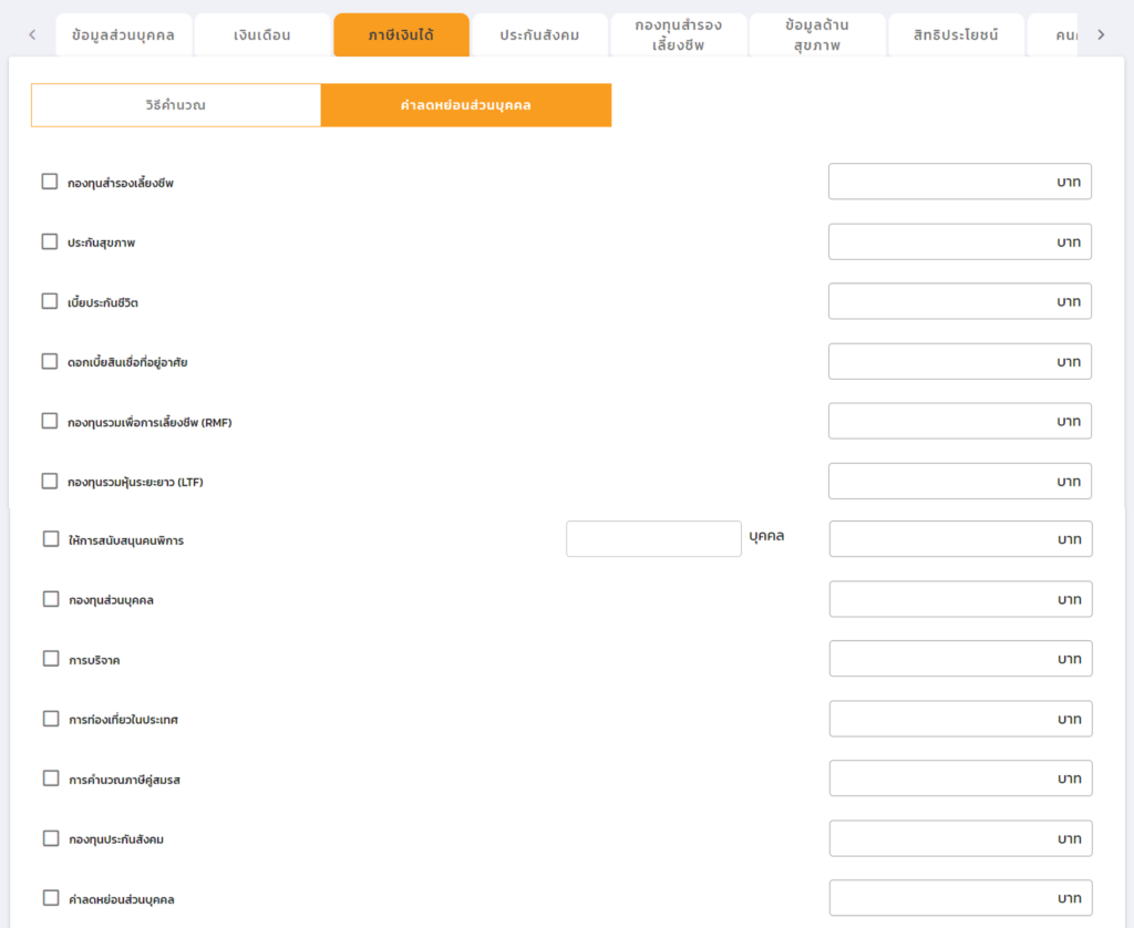 สามารถตั้งค่าในส่วนของค่าลดหย่อนส่วนบุคคลของพนักงานเพื่อนำไปคำนวณภาษีเงินได้